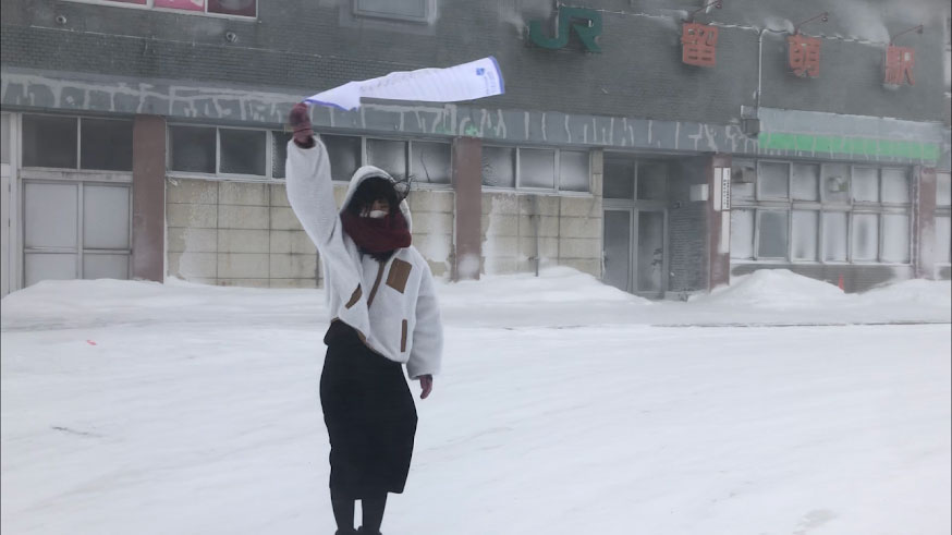 札幌の記者が、暴風雪の中、