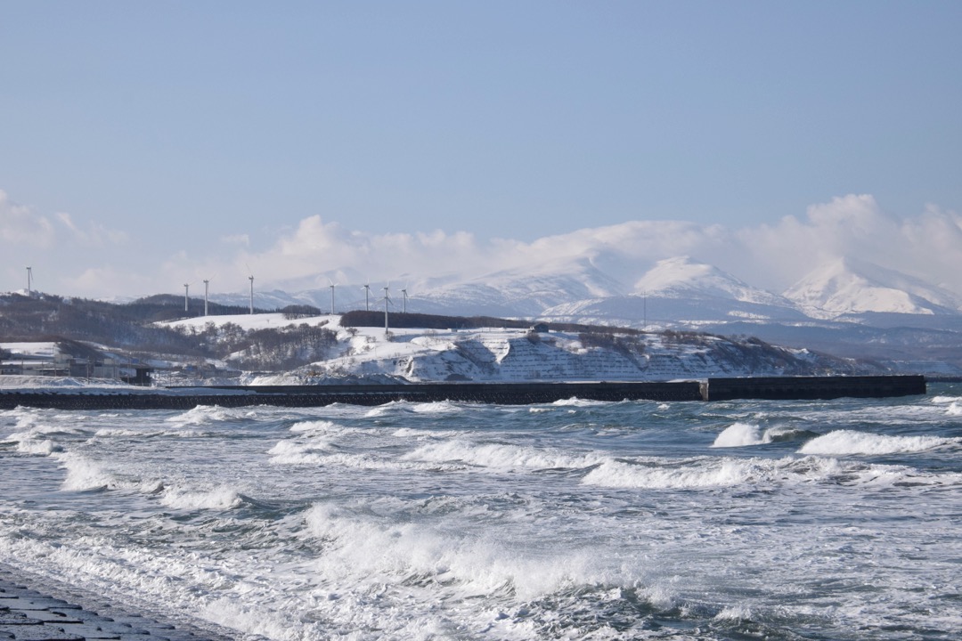 冬の海に現れる蒸気霧「けあらし」。